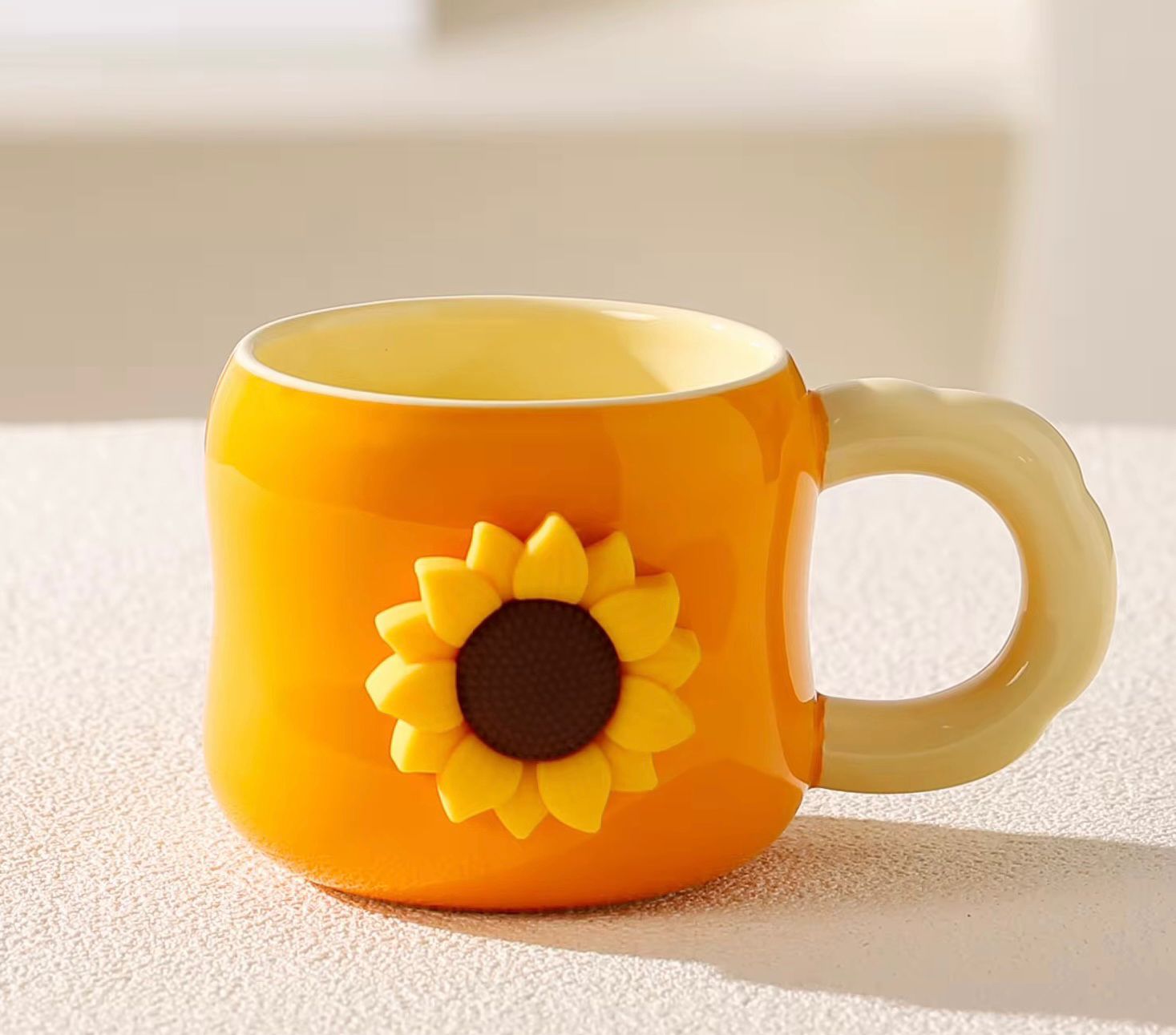 • ابدأ يومك بإيجابية مع هذا الكوب الخزفي الرائع. سيُضفي تصميم عباد شمس اللطيف لمسةً من البهجة على مائدة فطورك، مما يجعل وجبتك الصباحية أكثر متعة. سواء كنت تشرب العصير أو الحليب أو مشروبك الساخن المفضل، فهذا الكوب هو الرفيق المثالي لوجبة فطور لذيذة ومغذية.