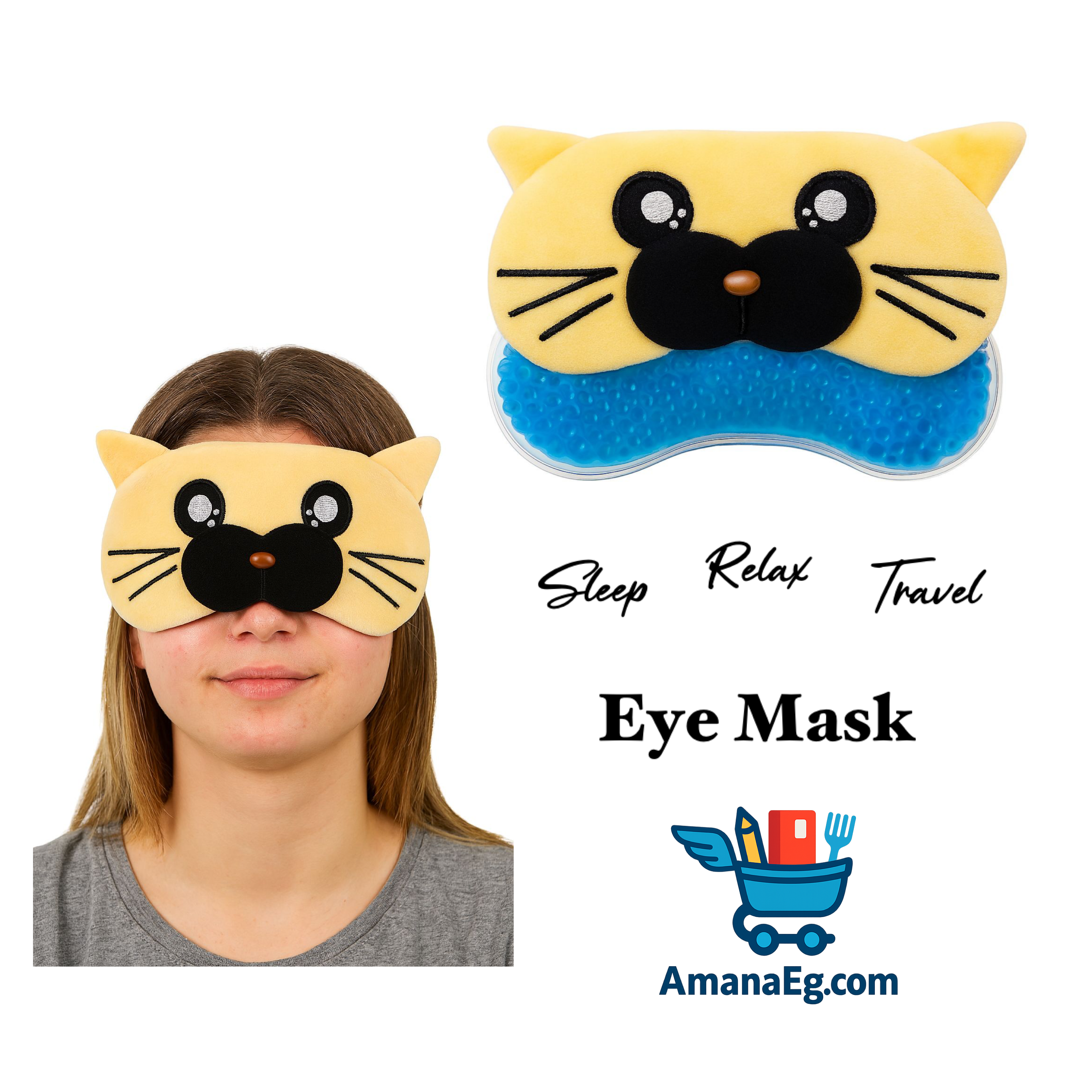 (Yellow) Eye Sleeping Mask & Cooling Gel 3D - Cat