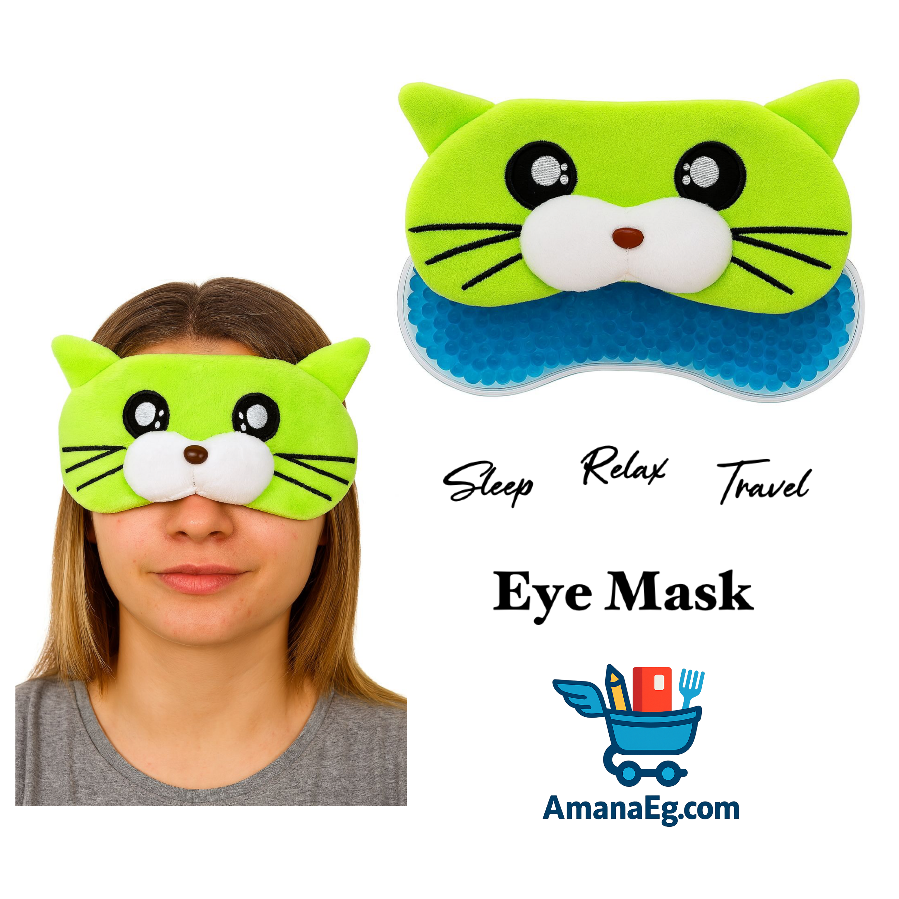 (Green) Eye Sleeping Mask & Cooling Gel 3D - Cat